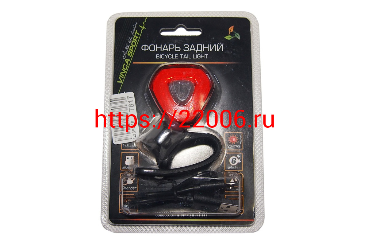- Фонарь Вело задний, кабель USB для подзарядки в комплекте, инд.уп.VS в Ростове-на-Дону недорого